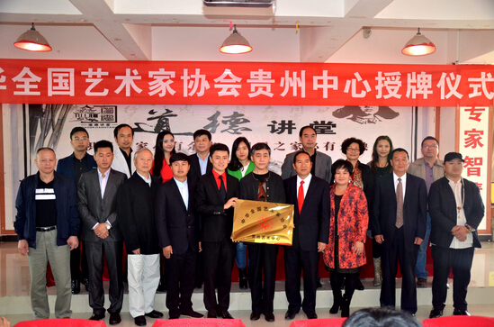 成立儀式上,中華全國藝術家協會主席魏東明,全國藝術家協會秘書長尹于洋向貴州城市學院授牌。