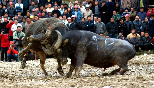 據悉,本次斗牛大賽,凡對斗1分鐘以上,未獲得前五名的斗牛,每輪架勝方獎100元,敗方獎200元,勝方進入下一輪比賽;凡進場直碰的、碰抵雙方各獲100元獎勵,雙方對碰各獲200元獎勵,碰牛獲勇猛直碰獎旗;凡將對方摳翻倒地的,雙方各獲100元的獎勵,摳方獲神摳獎旗;若被摳翻倒地后仍堅持到拉腳的獲頑強拼搏獎旗。每組報名參賽斗牛須達10頭以上,若不足10頭的組別,改為取前3名進行獎勵,且名次獎金相應減半兌現。
