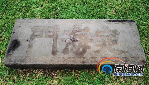 海口市五公祠最近在清理舊物時,在“浮粟泉”北側的一堆亂石中,發現了一塊“定海門”石匾,整體完整,字跡清晰。由于石匾此前未被發現和關注,海口市文物部門尚未將其登記造冊,列為文物保護單位。