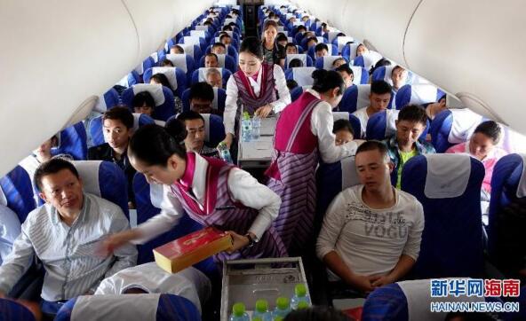 11月1日,南航CZ6725航班的乘務員為乘客提供服務。隨著海南旅游旺季的到來,南方航空公司增加了海南進出港航班,推出了海口、三亞至廣州、北京、上海、重慶等40條航線一折票價,完善了多元化支付手段、自助值機、網上值機等一系列個性化服務,讓乘客以低廉的價格享受到空中航行的便利。新華社記者趙穎全攝