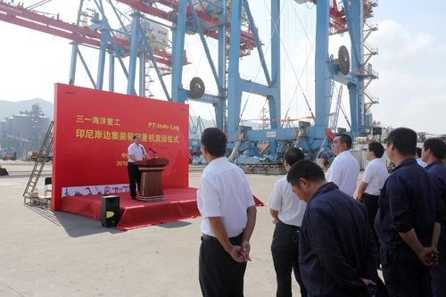 9日上午,一艘載著3台岸橋的貨輪正式啟航駛往印度尼西亞。這是三一海洋重工獨立研制、開發的岸邊集裝箱起重機(簡稱STS,通稱岸橋),具有卓越的整機性能,高檔的配置、先進的電液控制系統、完備的安全保護系統,具有多項專利技術。作為全球化的機械設備制造商,三一已自主開發出系列岸橋產品;同時可以根據用戶的不同需求,快速設計新的定制產品。