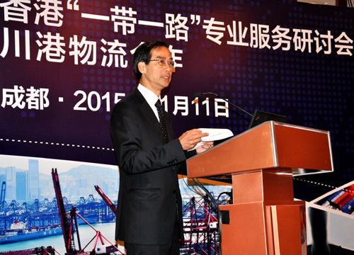 【香港商報訊】記者金山報道:11月11日上午,由香港特別行政區政府駐成都經濟貿易辦事處(駐成都經貿辦)、四川省商務廳、四川省現代物流協會、中國香港(地區)商會-成都及香港特別行政區政府投資推廣署主辦,香港生產力促進局協辦的香港“一帶一路”專業服務研討會暨川港物流合作在成都香格里拉大酒店舉行。