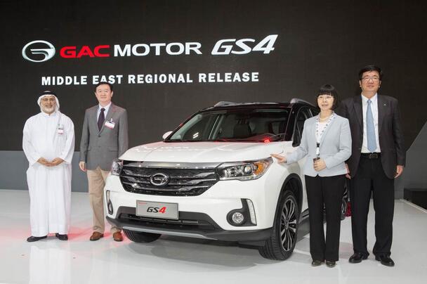 從左至右分別為:Gargash集團總裁Samir Gargash,中國駐阿聯酋大使常華,中國駐迪拜總領事李凌冰,廣汽集團執行董事、廣汽乘用車總經理吳松