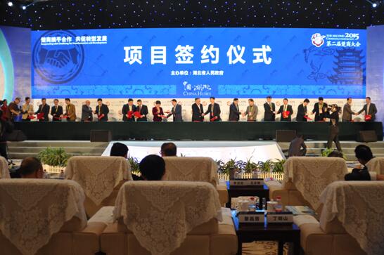 開幕式後,大會現場分三批集中簽約30個重大項目。其中,泰康人壽擬投資300億元,在漢建設泰康國際醫療城,並選址東湖新技術開發區花山生態新城,投資2.5億元打造國際標准醫療養老社區。中國民生投資股份有限公司、大連億達發展有限公司與百步亭集團聯合,擬在漢投資500億元,興建武漢雙創大廈,參與城市基礎設施、舊城改造、建築工業化和養老醫療等領域的投資。