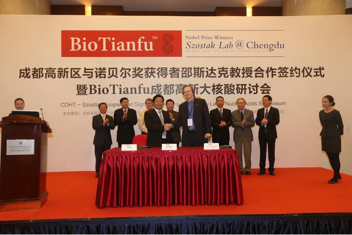 (香港商報網訊)記者郭代勤報道:11月16日,成都高新區管委會與2009年諾貝爾生理學醫學獎得主杰克·邵斯達克教授(Jack W. Szostak)在成都簽訂戰略框架合作協議,在成都高新區天府生命科技園建設“邵斯達克-四川大學大核酸研究院”,并整合四川大學、哈佛大學、佐治亞州立大學、麻省總醫院等科研機構在核酸技術領域的一流人才、研究成果等資源,推動大核酸研發及產業化發展。