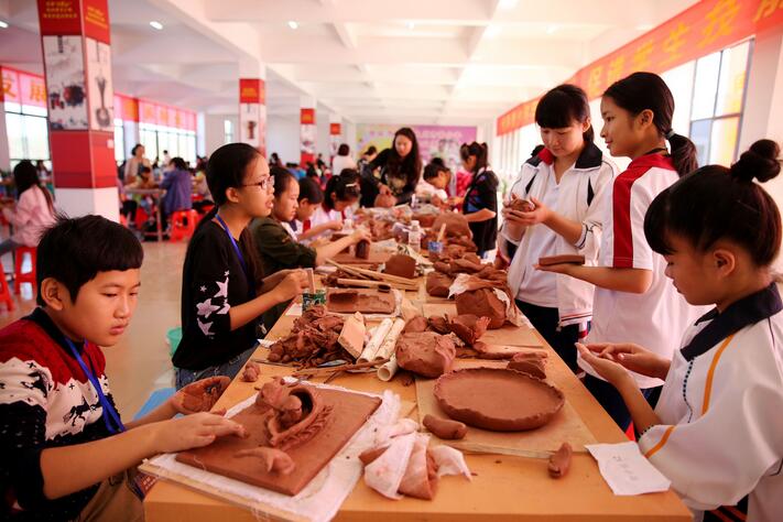 21日,2015年廣西(欽州)坭興陶“兩賽一展”活動開幕式在廣西欽州坭興陶文化創意產業園舉行,來自河北、湖南、江西、貴州等全國各地的160名陶瓷大師和愛好者參賽。