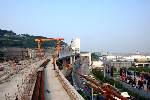 [香港商报讯]记者陆绍龙报道:近日,记者从中国交建旗下的中国港湾和中交四航局承建的澳门轻轨C370轻轨标段项目部获悉,连接珠海横琴和广州的广珠城际轻轨澳门轻轨C370标段年底桥面全线接通,中国交建以央企的履约精神在澳门的轻轨建设中起到表率带头作用。