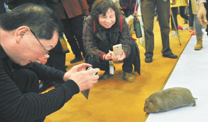 肥肥的“銀星竹鼠”引得市民一陣狂拍。