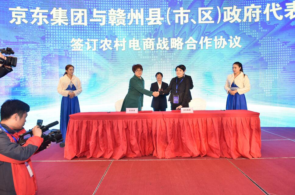 京東集團與贛州縣(市、區)政府代表簽訂農村電商戰略合作協議。