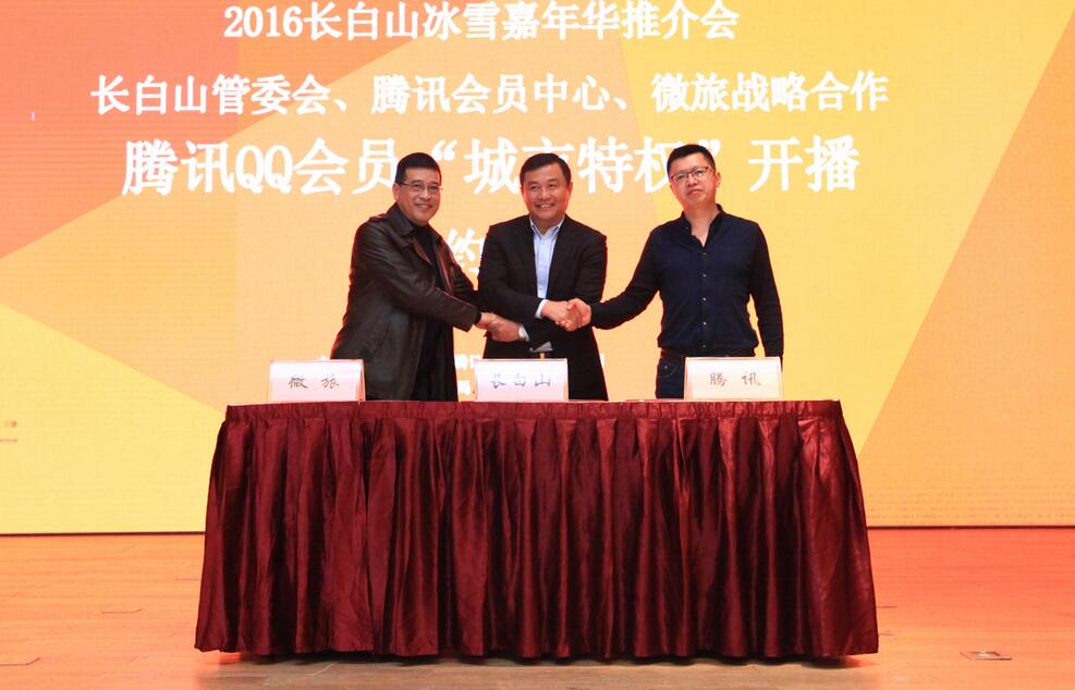 【香港商報網訊】實習記者馬力報道:12月2日,長白山管委會在長春召開新聞發布會,全面啟動了2016長白山雪節暨長白山國際冰雪嘉年華活動,長白山冬季旅游一系列優惠辦法也在發布會上正式出臺。發布會上,長白山管委會秘書長巖一兵與騰訊總部負責人劉巍、微旅公司總裁李東升共同簽署了戰略合作協議。
