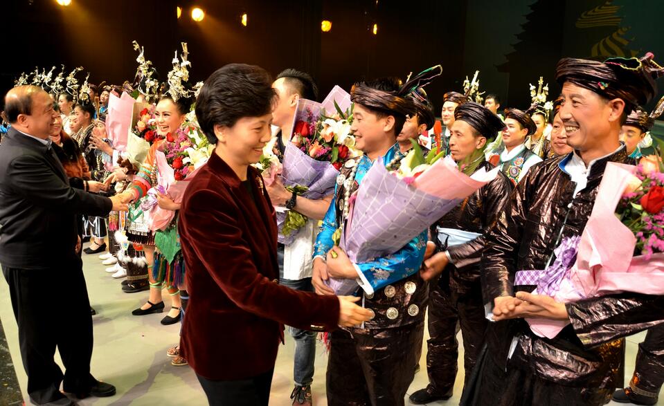 當晚首場演出上,貴州省委副書記諶貽琴,省委常委、省委宣傳部部長張廣智等出席展演季啟動儀式并觀看首場展演季劇目。