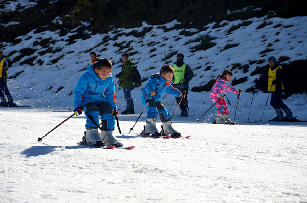 “玉舍雪山滑雪場于2013年建成營業,雪場面積5萬平方米,能為游客提供高山滑雪、雪地摩托、雪上飛碟、雪地悠波球等雪上運動項目。現在滑雪場日接待量可達6000人次,開業三年來,已吸引游客20余萬人次。本次活動旨在讓幼兒能走進森林,了解森林,為培養幼兒對體育活動的興趣,促進幼兒的身體健康,增強身體素質,提高對外界的適應能力以及自我保護的能力。此外,今冬滑雪季,玉舍雪山滑雪場還將舉辦冰雪藝術節和“比基尼”滑雪賽為游客助興。”六盤水市玉舍國家級森林公園管理處副主任劉祥仁向記者介紹說。