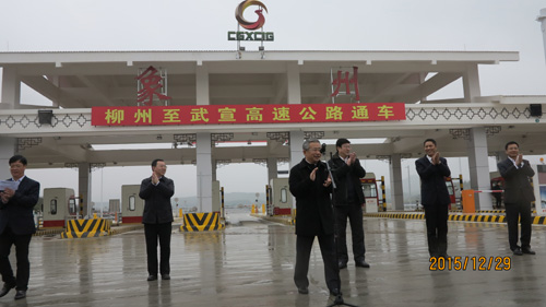 刘可致辞表示,柳州至武宣高速公路是广西自治区“十二五”交通重点工程项目,该项目的竣工通车,使柳州市近十年来高速公路发展里程又上了一个新的台阶,进一步完善了柳州市高速公路路网布局,对巩固提升柳州市区域性交通枢纽地位,具有重要作用。同时对进一步加强柳来河区域一体化联动发展,使该区域积极融入珠江—西江经济带开放开发战略具有十分重要的意义。