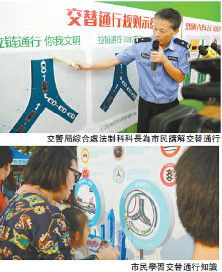 「既然有法可依,而且會被罰,那麼以下規則就該看仔細了。」深圳市公安局交通警察局綜合處法制科科長李廣群在儀式上對市民手把手的比劃著:機動車在車道減少的路口、路段,遇有前方機動車停車排隊等候或者緩慢行駛的,應當自匯流點開始,按照右道1輛、左道1輛的次序交替駛入車道減少后的路口、路段(即「一讓一」模式)。簡而言之,就是到達匯流位置(即應交替通行的位置)時,左側車道車輛讓右側車道1輛車先行,「先右后左」,而后交替通過。在沒有交通信號燈、交通標誌、交通標線或者交通警察指揮的交叉路口遇到停車排隊等候或者緩慢行駛時,機動車應當依次交替通行,通行規則同上。深圳市公安局交通警察局副局長徐煒表示,「交替通行是特定路口、路段兼顧安全與效率的最佳規則。提倡交替通行,一是能夠減少事故,提高通行效率,有效規範車輛合流時的行車秩序;二是提升道路交通文明,有利於培養文明有序、禮讓在先的良好行車習慣,提升深圳市交通文明形象。」