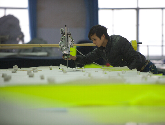 1月12日,南昌市青山湖區一服裝企業員工在剪裁布料。