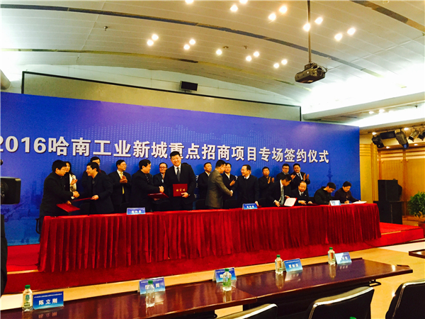 【香港商报讯】记者孙晶波:12日,哈南工业新城重点招商引资项目专场签约仪式在哈尔滨经济技术开发区举行。签约项目涵盖装备制造业、新能源、现代服务、食品生物、智能装备等多个行业的35个项目,投资总额达242.95亿元。
