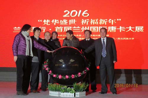 【香港商报讯】见习记者寇刚报道:1月18日,2016“梵华盛世 祈福新年”首届兰州国际唐卡大展在甘肃兰州隆重开幕,来自甘肃、青海的百余幅唐卡精品18日至21日亮相兰州文化创意产业园,展示西北内陆渊源的佛教文化,祈福新年盛世,为唐卡爱好者带来一场视觉盛会,送上新年最佳祝福。