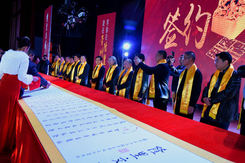 此次盟誓礼形式采用入选国家级档案遗产的锦屏文书,设计了长12米的《隆里文书》,由17位领导嘉宾依次盖上印章。《隆里文书》将由锦屏文书楼永久收藏。签约预示着锦屏县人民政府正式将隆里古镇文化旅游区委托湖南华旅文化运营。