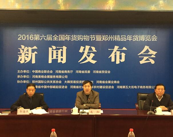 【香港商报讯】记者马恒姝报道:“2016第六届全国年货购物节暨郑州精品年货博览会”将于1月27日至2月4日在郑州国际会展中心举行,展期共9天。年博会是河南省在精简近百余个展会后保留下来的为数不多的重要公益惠民的展会,现已连续举办五届。