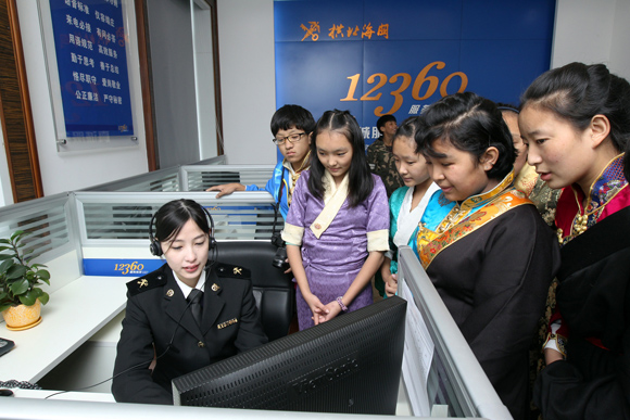 在關員的帶領下,大家還參觀了“12360海關熱線”工作室。該熱線是拱北海關政務公開的重要窗口,在熱心服務企業和旅客方面廣受好評。自2010年9月30日正式運行以來,熱線7×24小時全天候提供服務,為市民處理海關業務、通關求助、投訴舉報等問題。據統計,2015年,熱線共處理各類咨詢15815件,日均處理咨詢逾60件,最高每日120件,直接答復率達99%。拱北海關“12360”熱線接通率、直接答復率和滿意度均處于全國領先水平。去年,該關在全國海關“12360”崗位練兵泛珠賽區分區競賽中,榮獲團隊三等獎和選手最佳表現獎。