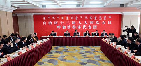 圖片說明:內蒙古自治區十二屆人大四次會議呼和浩特代表團審議政府工作報告