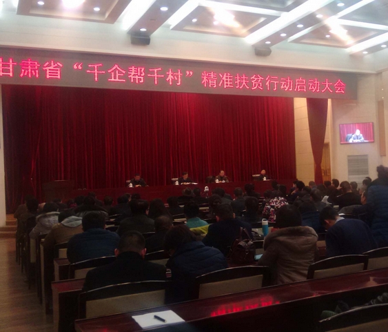 【香港商報網訊】見習記者寇剛報道:1月25日,繼全國工商聯、國務院扶貧辦、中國光彩會推進“萬企幫萬村”精准扶貧行動全國電視電話會議後,甘肅省召開了“千企幫千村”精准扶貧行動會議,61家商會、35名企業家現場結對幫扶163個貧困村,並向全省工商聯會員企業、直屬商會和全省非公有制經濟人士發出了積極參與“千企幫千村”行動的倡議,標志著甘肅省“千企幫千村”精准扶貧行動正式啟動。