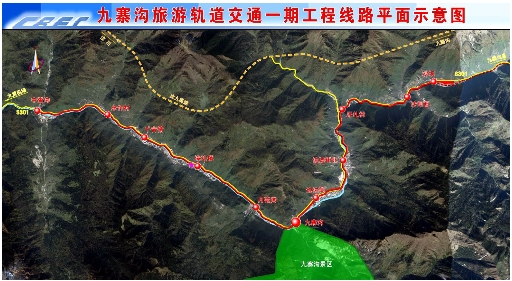 據了解,根據達成的協議,三方擬規劃建設的軌道交通線路全長84.53㎞,計劃分三期實施建設。第一期架設九寨溝縣漳紮鎮人車分流系統(牙屯至沙壩),線路始於九環線南側的新建中查溝站,終點站位於沙壩村東側,線路全長約22公裏,均為高架車站,投資估算人民幣約35億元,建設期限不超過2年。並適時啟動二期工程沙壩至縣城和三期工程溝口至火車站的空中軌道交通建設。