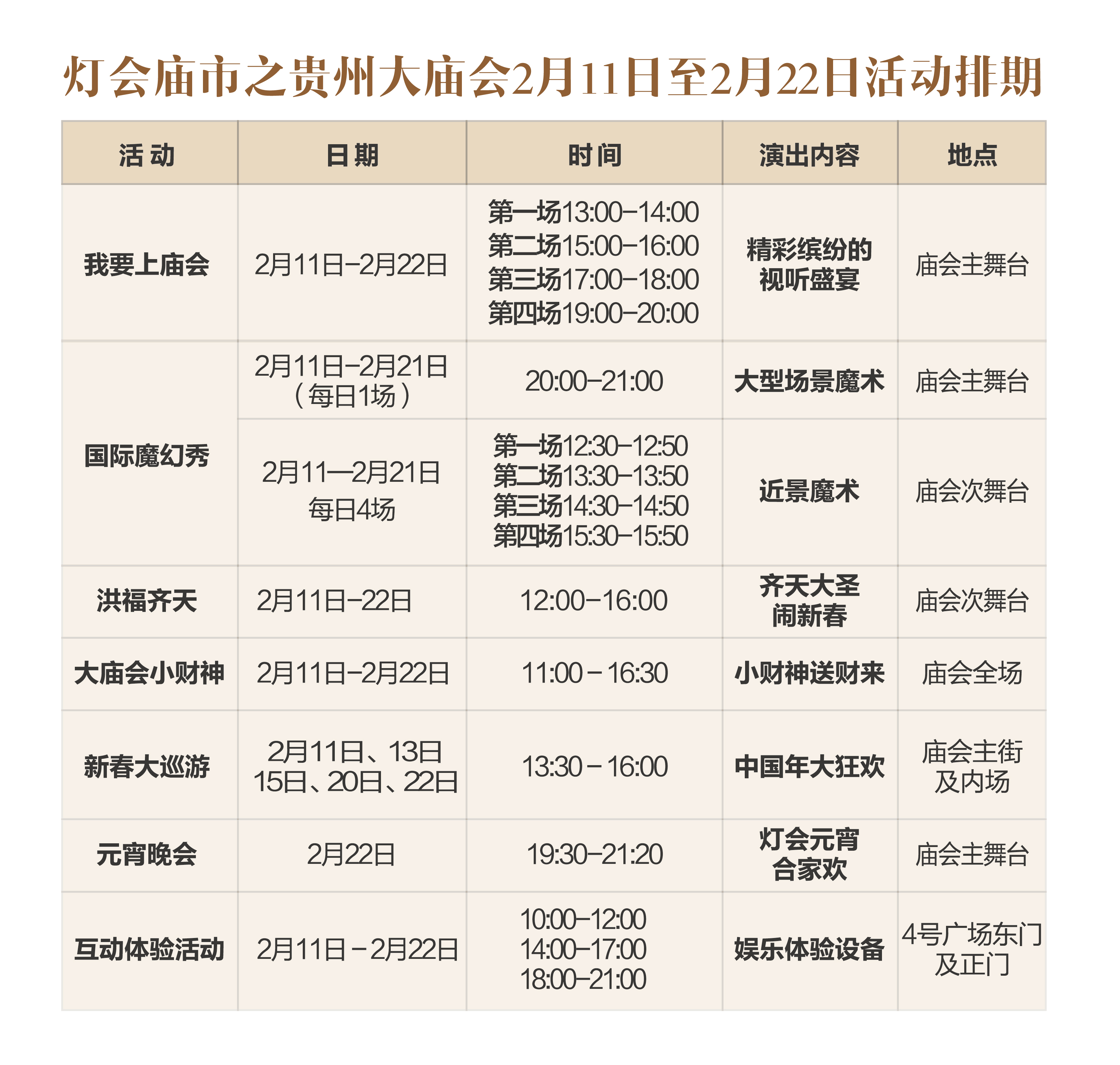 另悉,燈會廟市亮燈儀式將於2月11日(農曆正月初四)19:00-19:20在西南國際商貿城2號廣場東側小廣場(金陽客車站廣場對面)舉行,相較於往年,今年亮燈儀式更加突顯親民和科技兩個特點。
