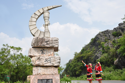 千家峒民俗文化村。江永縣城北11公里,瑤族祖居故地之一。千家峒是一個山間盆地,四周被崇山峻嶺環抱,面積約16平方公里,進出僅有“穿巖”唯一通道。這里至今保存著“盤王廟”“盤宅妹墓”、“平王廟”等瑤族歷史文化古跡,流傳著神奇動人的民間傳說。我國南方各省(區)和遠遷至東南亞、歐美的瑤胞都保存了一份手抄千家峒古文獻,他們因此世代尋找千家峒故地。千家峒境內鳥山,白鵝山、白鵝洞、白鵝飛瀑、雙塘映月、馬山、狗頭巖、大白水瀑布、金童放牧、天女散花、三峰霽雪、仙人橋等自然景觀迷人,宛若仙境,被喻為瑤族的“桃花源”。幾百年來,無數遷居國內外的瑤脆來到這里尋根祭祖。