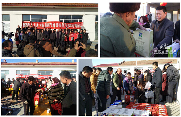 內蒙古民族特色產品聯合會主席王海峰、執行主席王占彪介紹說:內蒙古的特產企業是內蒙古的名片,這些企業和企業家都非常有社會責任感,春節期間是企業最忙碌的時候,可是這些企業不僅拿出最好的產品,而且抽出人力和車輛,不遠數百里給困難農民家庭送溫暖,這就企業的愛心無私體現。據了解,參與此次暖冬行動的內蒙古民族特色產品聯合會會員單位有內蒙古大牧場牧業(集團)有限責任公司、內蒙古泰利達乳業有限公司、內蒙古蒙清物流有限公司、內蒙古烏蘭察布市草原肉食品公司、呼和浩特市特牛食品有限責任公司、內蒙古汗達食品有限責任公司、呼和浩特市蒙亮食品有限公司、內蒙古錢毅食品有限責任公司、內蒙古九車牛商貿有限公司、內蒙古格日勒皮藝文化產業發展有限公司、內蒙古伊佰食品有限責任公司、呼和浩特市草原詩歌食品有限責任公司、內蒙古蒙酒酒業有限公司、內蒙古蒙伊薩食品(集團)有限責任公司、內蒙古天地草原食品有限公司、內蒙古鼎融農牧業有限公司、蒙和朱拉民族服飾、巧媽媽釀造公司等。