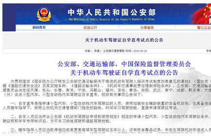中國江西網訊 記者張思楠報道:2月4日,公安部交通運輸部發布《關于機動車駕駛證自學直考試點的公告》(以下簡稱《公告》),決定于2016年4月1日起,在16個城市(州)試點小型汽車、小型自動擋汽車駕駛證自學直考,吉安市成為江西唯一試點城市。