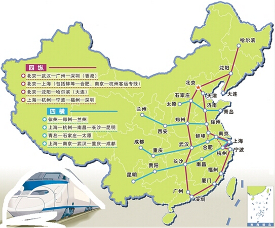 京廣高鐵、滬漢蓉快速鐵路一縱一橫在武漢交匯,加上其他高鐵線路的連接,從武漢出發,可北到京津、南到廣深、東到上海寧波、西到成渝、東北到沈陽、東南到福州廈門、西北到西安、西南到桂林和南寧等地,“米”字高鐵網形成。