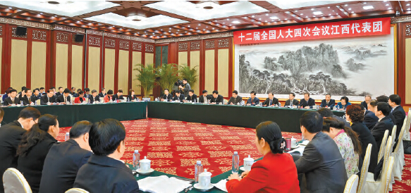 【香港商報網訊】記者郭美勤、黃穎報道:3月5日下午,十二屆全國人大四次會議江西代表團在住地金臺飯店審議政府工作報告,并向境內外媒體開放。