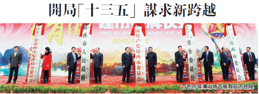 2015年12月12日,百年山水邊城靖西完成了撤縣設市的華麗轉身。中國最年輕的縣級市之一,廣西第8個縣級市、廣西中越邊境第3個和百色革命老區第1個縣級市--靖西市誕生。靖西由此迎來了發展的里程碑,開啟一段嶄新的歷史征程。靖西市委書記黃小寧表示,「十三五」,靖西將在建市的新起點上揚帆起航,打造充滿活力與繁榮的城市產業,建設美麗生態的城市風貌,塑造有壯民族特色的邊關城市風格,形成中國面向東盟國家通道的重要門戶,實現從邊緣向開發開放前沿轉變,建成廣西新的口岸城市,成為邊疆區域性中心城市。香港商報記者 馨瑤、闕琳晶 特約記者 趙福播