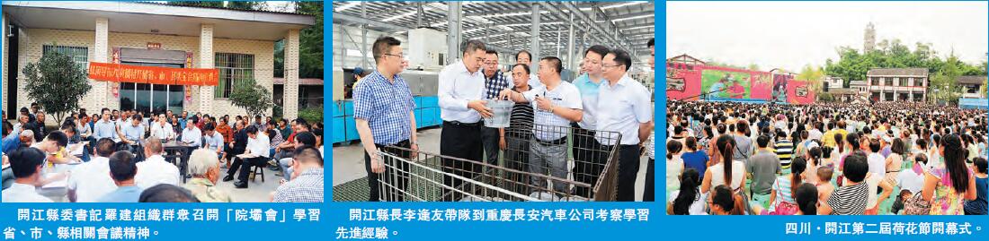 開江縣牢固樹立「抓好黨建是最大政績」的理念,紮實開展「三嚴三實」專題教育,創新建立「毓秀開江大講堂」、搭建「指尖微講堂」,黨員思想「總開關」進一步擰緊。開展「守紀律、講規矩、惠民生、促發展」黨風廉政建設主題實踐活動,進一步融洽了黨群干群關系。制定《開江縣黨員干部日常行為規範(試行)》,建立「五嚴五愛」管理機制和「兩優五型」領導班子結構模型,實施優秀年輕干部人才「三級聯動」掛職鍛煉,深入開展選人用人問題「5+2+1」專項整治,激勵了黨員干部奮發有為。圍繞脫貧攻堅,開江充分發揮基層黨建的引領作用,創新「企業+富裕村+貧困村」模式的精準扶貧聯合黨委,探索建立「專業協會支部、公司支部、先進村支部同向幫扶貧困村支部」的「三聯一帶」幫扶機制,統籌優勢資源齊聚脫貧攻堅一線。