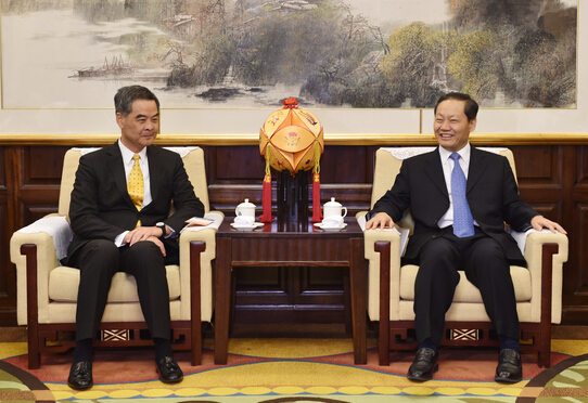 廣西書記彭清華與香港港特首梁振英3月6日在京交流桂港合作