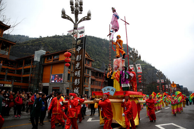 上午10時,參加巡游的“大壩高裝”、苗族風情舞蹈、舞龍燈、川劇絕技等一個個頗具地方特色和苗族風情的藝術精品,紛紛走上街頭,興文縣城沉浸在歡天喜地的節日氛圍中。