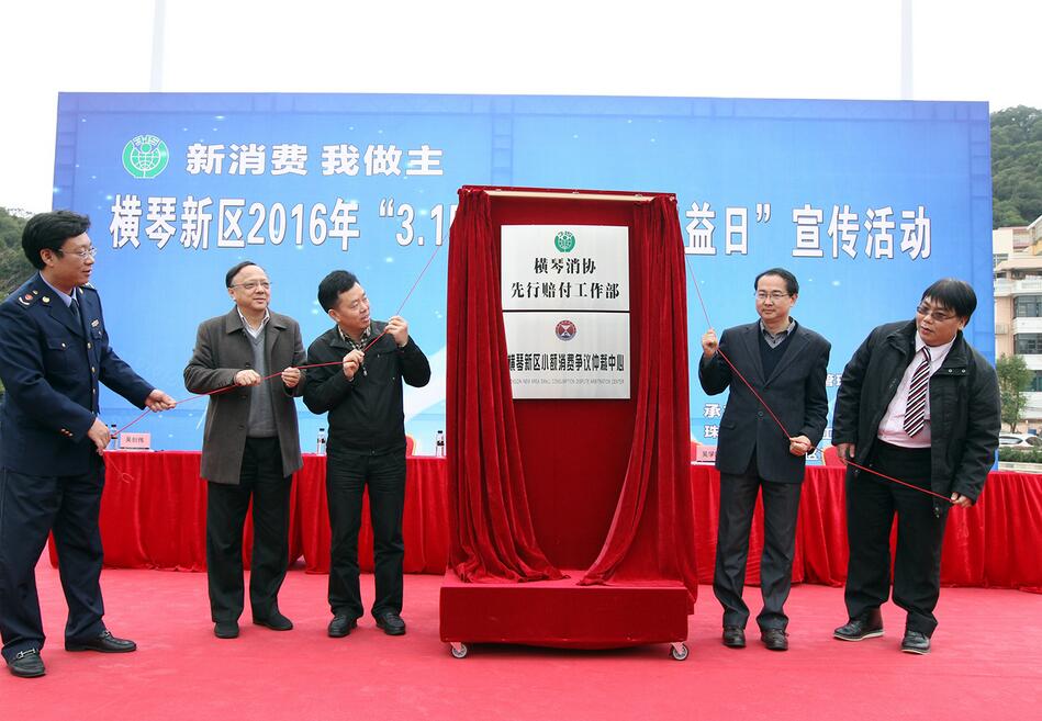 同時,橫琴新區黨委副書記葉真,區管委會副主任閻武,以及珠海仲裁委主任高樹林,橫琴新區工商局局長、橫琴消協名譽會長吳創偉,現場共同為橫琴消協先行賠付工作部和橫琴新區小額消費爭議仲裁中心揭牌,宣告橫琴新區先行賠付和小額消費爭議仲裁制度的正式施行。據悉,該兩項制度由橫琴消協和珠海國際仲裁院共同研究制定,旨在快速、權威地解決小額消費爭議,實現“消費爭議不出島”,更好地維護消費者合法權益。