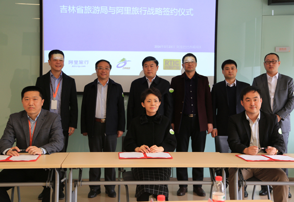 吉林省旅游局局长杨安娣代表吉林省旅游局与阿里旅行签署战略合作协议