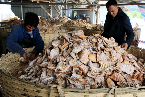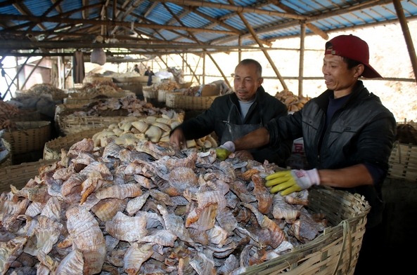【香港商報網訊】2016年3月28日,山裏村民在江西遂川縣衙前鎮竹筍加工企業正忙著烘筍幹。近年來,遂川縣通過“退耕還林、竹林墾複、護筍養竹”等措施,因地制宜引導農民大力發展毛竹及筍加工產業,目前,全縣竹林面積已達38萬畝,“竹筍”產業初具規模,生產的竹筍罐頭、玉蘭片、筍衣等加工產品除在國內銷售外,還銷往港澳地區和歐美市場,讓山區村民的腰包鼓了起來。(李建平攝)