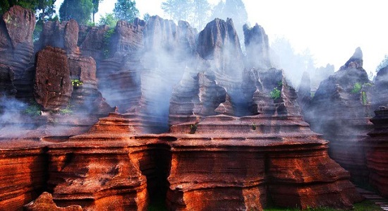 紅石林國家地質公園是中國惟一的紅色碳酸鹽石林。據權威考證,紅石林地質的形成有5億年,是揚子古海的海底。景區內石峰林立,紅石高聳,既有崢嶸奇石,也有柔美的石層疊積,造型各異,布局錯落有致。尤為稱奇的是石的顏色變化多端,晴紅雨黑,陰轉褐紅,晨昏有別。整個景區融紅、秀、峻、奇、絕、古于一身,堪稱武陵第一奇觀,世界最美地質公園。