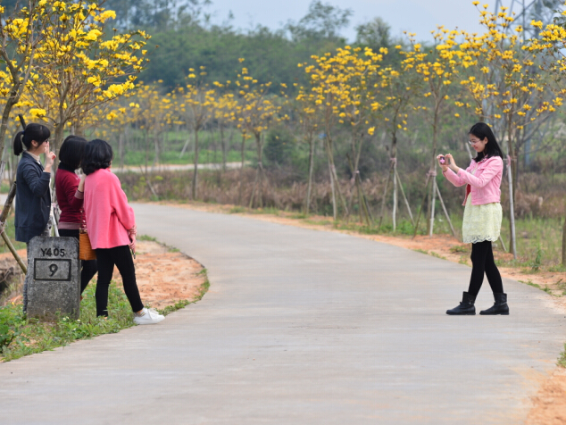 據介紹,自去年起,博羅縣楊僑計劃用三年時間打造“黃花風鈴世界”,以“黃花風鈴世界”為核心,形成“一心一環五區”的生態旅遊區,構建“花—果—田—林”景觀主線。“一心”指遊客綜合服務中心;“一環”指黃花風鈴木景觀環線;“五區”指以住宿為主的花香農居、以采摘為主的嶺南果園、以農家樂為主的歡樂田園、以休閑為主的知青天地以及養生山林五個主體功能區,讓遊客在任何季節都能感受到朝田特色的鄉村生態休閑遊。