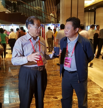 文昌市委书记陈笑波(右)与嘉宾交谈