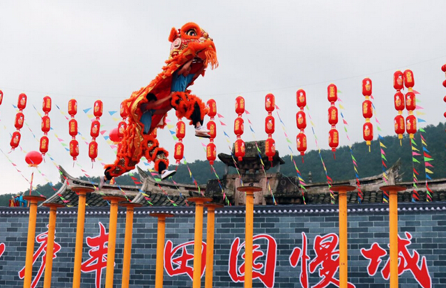 一大早,祭祀游行活動便開始了。村道上,鑼鼓開道,舞獅助威,蜿蜒的香燈龍連著五湖四海的后裔子孫,浩浩蕩蕩的祭祀隊伍不僅昭顯了藍氏后人的興旺發達,也是對藍氏祖先最隆重的禮遇。