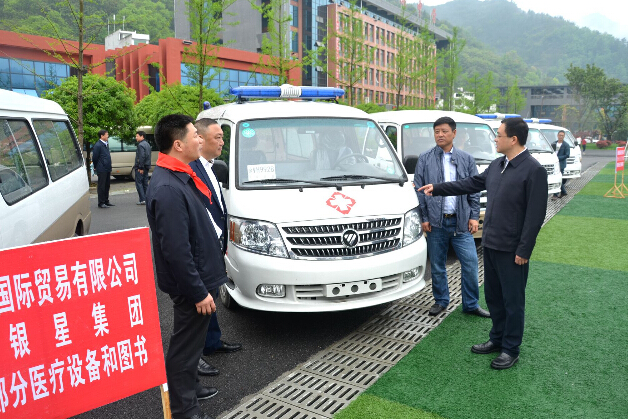 【香港商報網訊】記者 黃慶松 報道:4月12日,國泰康扶國際貿易有限公司、貴州銀星集團向沿河捐贈圖書和醫療設備捐贈儀式在沿河民族中學舉行,共捐贈圖書約25萬冊,救護車10臺,醫療設備20余套,合計人民幣1.8億元。