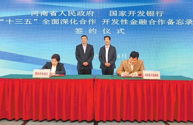 根據協議,“十三五”期間,雙方將在規劃、融資、專項建設基金、風險防控和其他創新方面加強合作,國家開發銀行將支持河南省地方政府債券和項目收益債券發行,創新PPP和政府購買服務等融資模式,推動河南省建立健康可持續的財政金融體系和投融資體制機制。