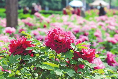 4月14日,三門峽市天鵝湖國家城市濕地公園的牡丹競相開放,吸引了眾多游客前來觀賞。目前,園內種植牡丹兩萬余株,有108個品種。孫猛攝
