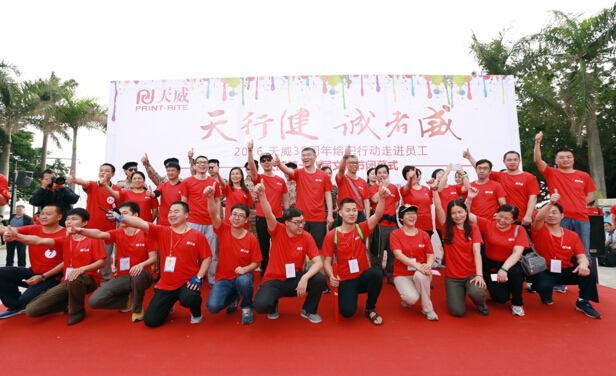 4月16日上午8點30分,天威耗材2000名員工穿著統一的印有“天行健,誠者威——天威35周年”活動標語的紅色定制T恤從海濱泳場準時出發,沿情侶路步行13公里,于正午到達梅華城市花園。希望通過這種體現“天威精神”的徒步活動,讓更多的人感悟天威文化,喝彩天威精神,為天威第18屆文化節畫上圓滿的句號。
