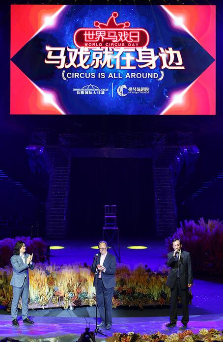 世界馬戲聯合會主席皮爾茲_烏爾斯(中)宣布第七個世界馬戲日正式啟動。
