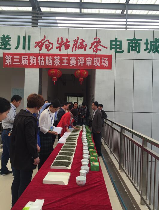 4月14日在遂川縣狗牯腦茶電商城舉行第三屆狗牯腦茶王賽評審會,由中國茶葉學會副理事長、中國茶葉商學院院長劉仲華,江西省茶業聯合會副會長兼秘書長趙沙鷗等9位專家對54個茶樣進行評審,評選出本屆茶王賽茶王1名,金獎1名,銀獎2名,優秀獎6名。
